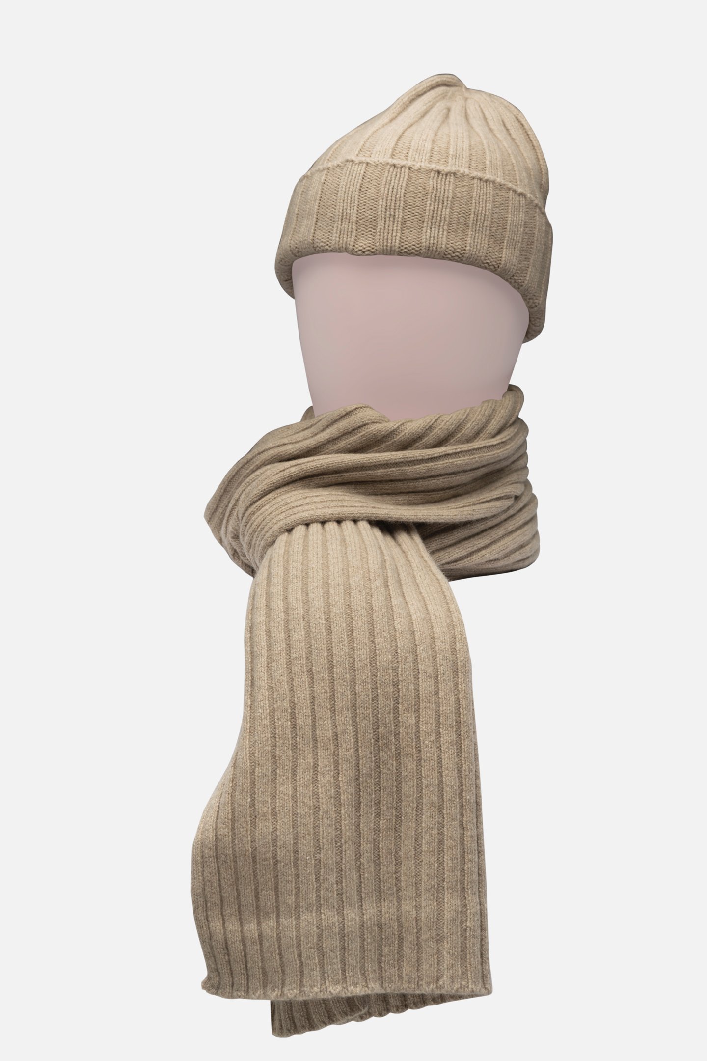 Cappello a zuccotto e sciarpa in puro cashmere a coste, modellati con maestria artigianale Made in Italy. Morbidi e caldi come un abbraccio invernale, dona un tocco di lusso discreto a ogni outfit raffinato.